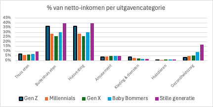 De economische onrust van de afgelopen decennia, zoals de financiële crisis van 2007-2008 en de naschokken daarvan, heeft een diepe impact gehad op de financiële vooruitzichten van jongeren. Velen maken zich zorgen over de mogelijkheid om ooit een huis te kunnen kopen en hun pensioen. Niet geheel ten onterechte overigens; uit Amerikaanse cijfers blijkt dat meer dan een derde van het netto-inkomen opgaat aan huisvesting – significant meer dan bij andere generaties (de cijfers voor de ‘stille generatie’ zijn vertekend door het relatief lage pensioeninkomen).